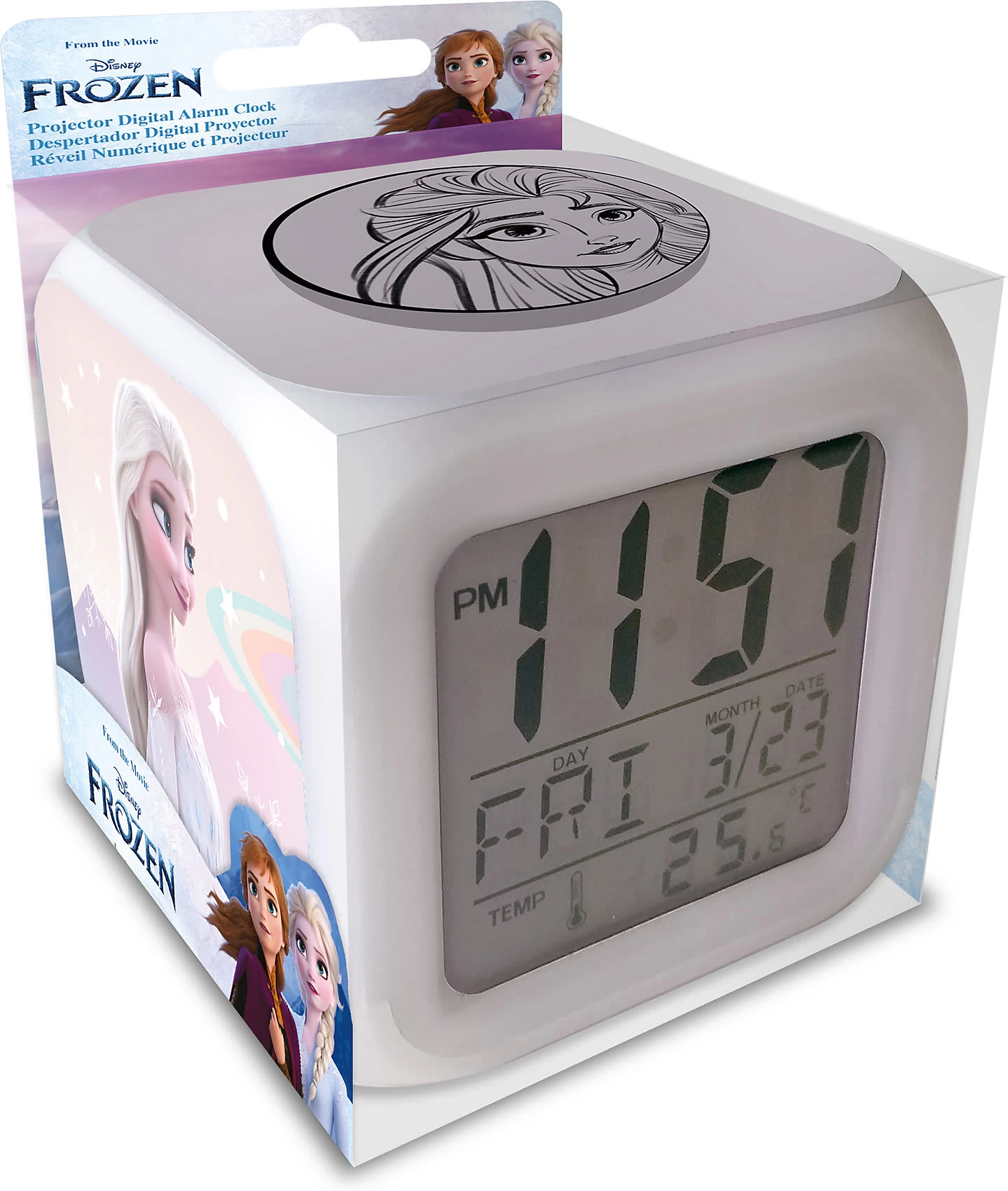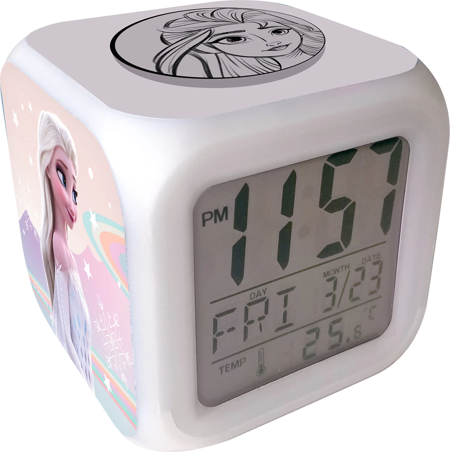 Für alle Eisprinzessinnen-Fans kommt mit dieser digitalen Uhr in Würfelform ein richtiger Hingucker auf den Nachttisch. Mit der digitalen Anzeige für die Uhrzeit, die Raumtemperatur und das Datum ist die Uhr ein Allrounder für das Kinderzimmer. Die niedlichen Motive werden die kleinen und großen Fans begeistern.