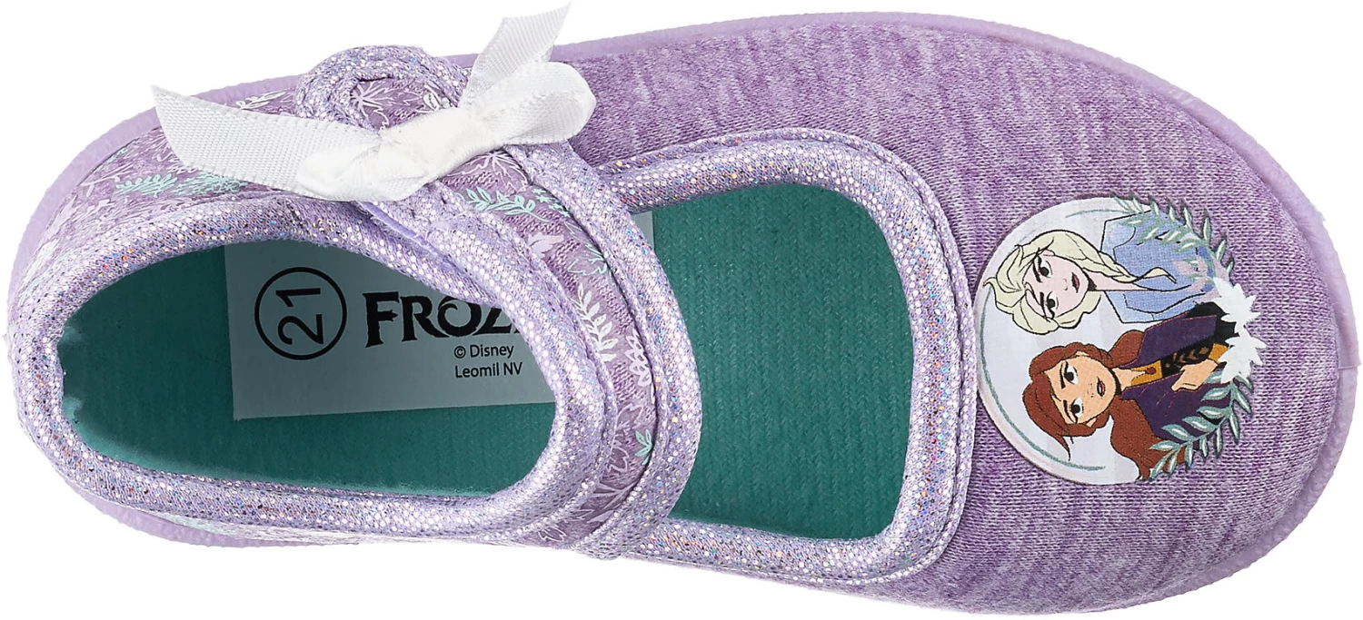 Diese Hausschuhe begeistern mit auffälligem Disney Die Eiskönigin-Design. Es handelt sich um ein Modell zum einfachen und schnellen Hineinschlüpfen. Die Aufmachung des Paares wird durch das textile Obermaterial ergänzt.