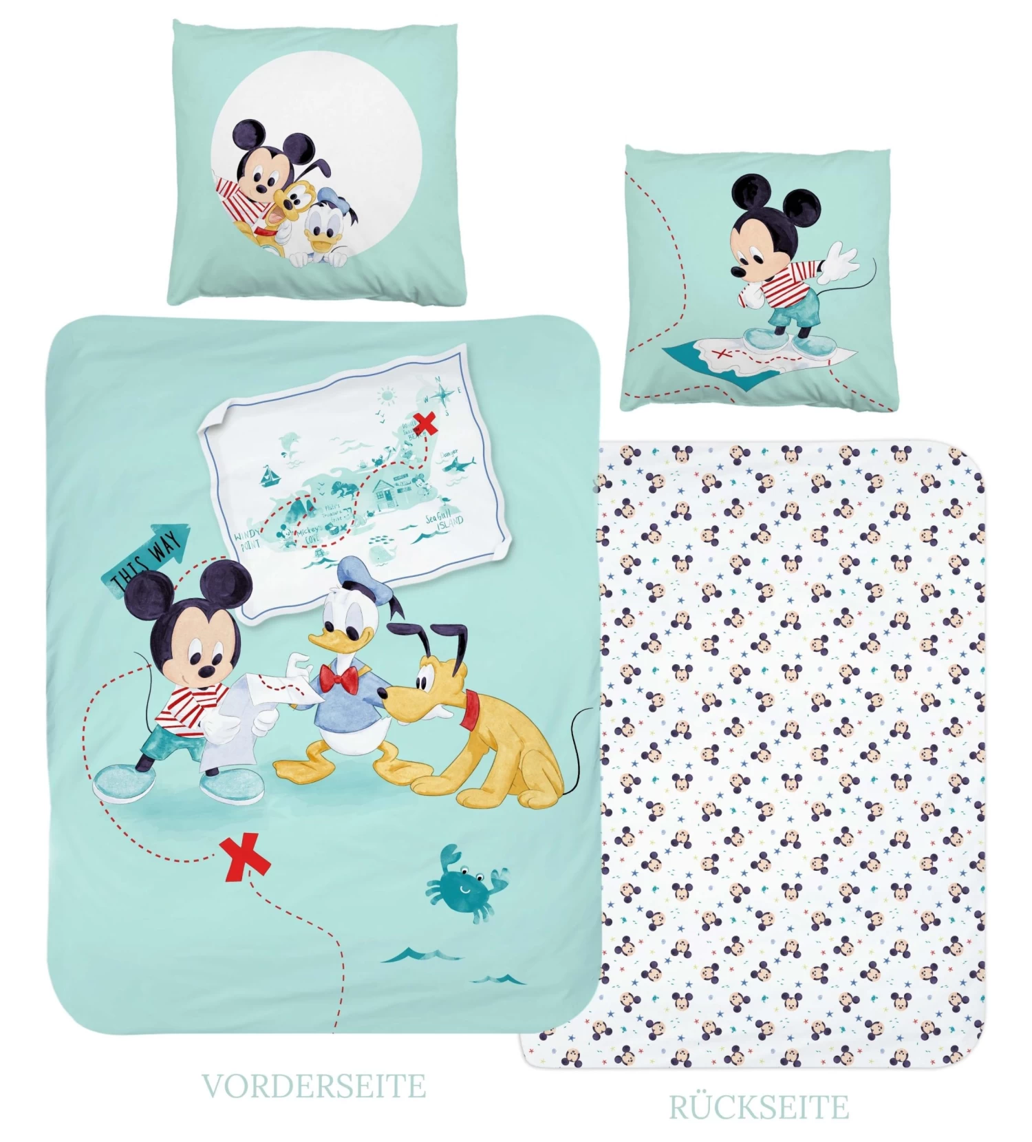 Kinder Bettwäsche-Set „Disney’s Mickey Mouse, Pluto & Donald Duck“ In Mint