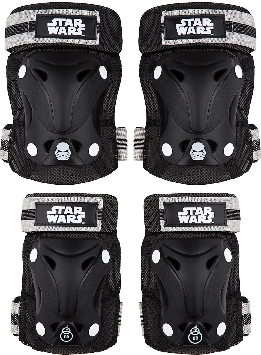 Ob Fahrrad, Roller oder Inline-Skates: dass es beim Fahren zu Stürzen kommt, ist ganz normal – schließlich ist aller Anfang schwer. Damit es aber nicht zu Verletzungen kommt schützt dieses Set in cooler Optik kleine Knie und Ellenbogen vor blauen Flecken und Kratzern. Die Schoner werden mit Bändern aus Klettverschluss befestigt, sodass auch ein selbständiges An- und Ausziehen möglich ist. Dank toller Aufdrucke werden die Protektoren auch von kleinen Rebellen gerne getragen.